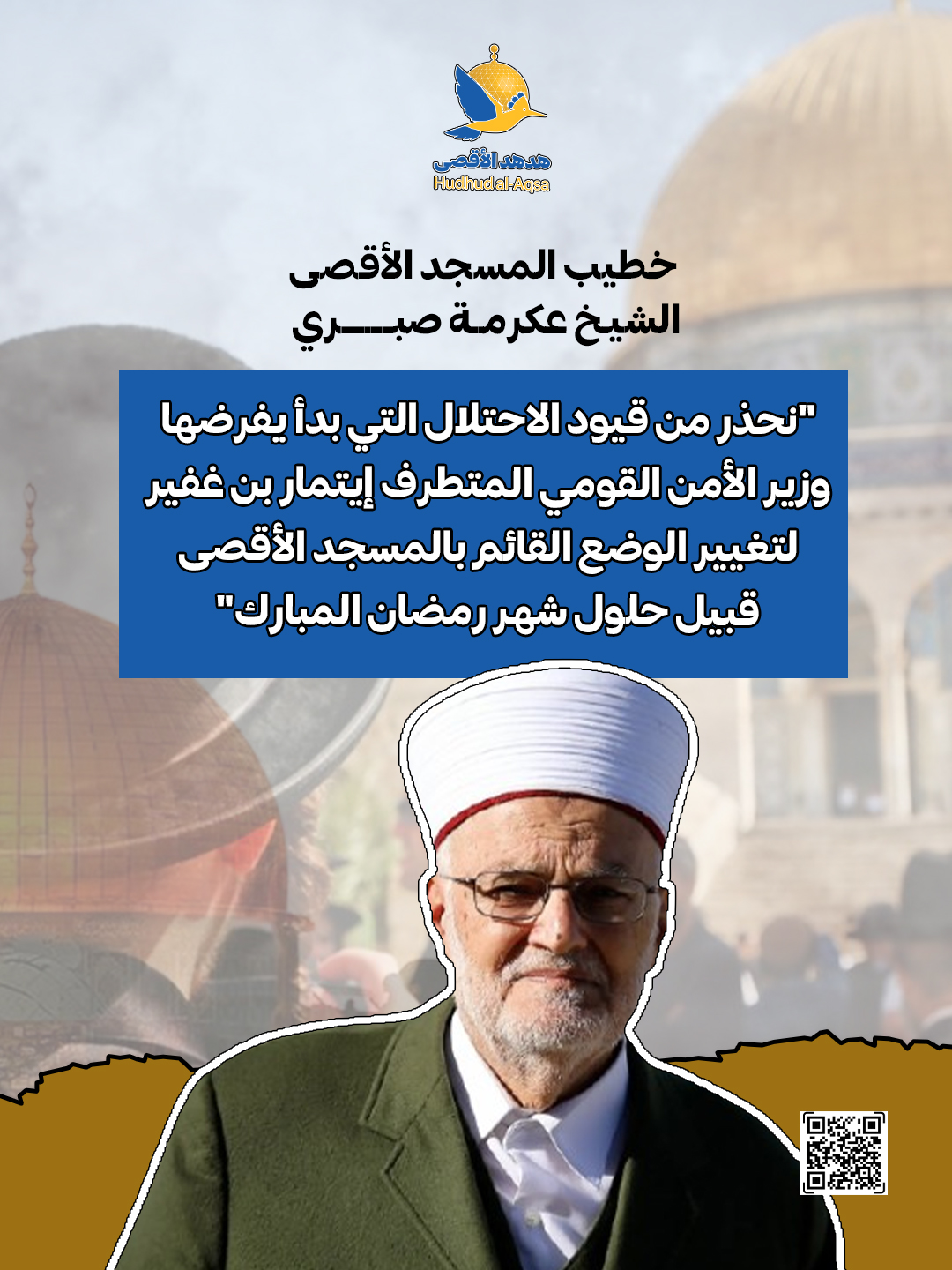 نحذر من قيود الاحتلال التي بدأ يفرضها وزير الأمن القومي المتطرف إيتمار بن غفير، لتغيير