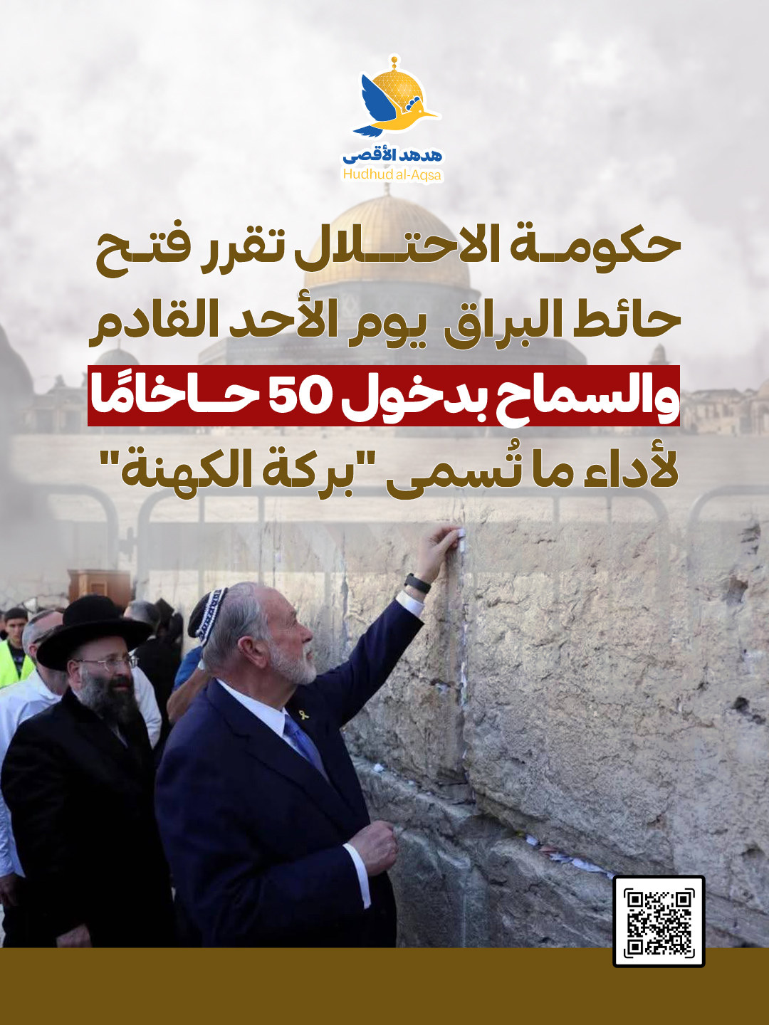 حكومة الاحتلال تقرر فتح حائط البراق يوم الأحد القادم 4 أبريل، اعتبارًا من الساعة 8:30
