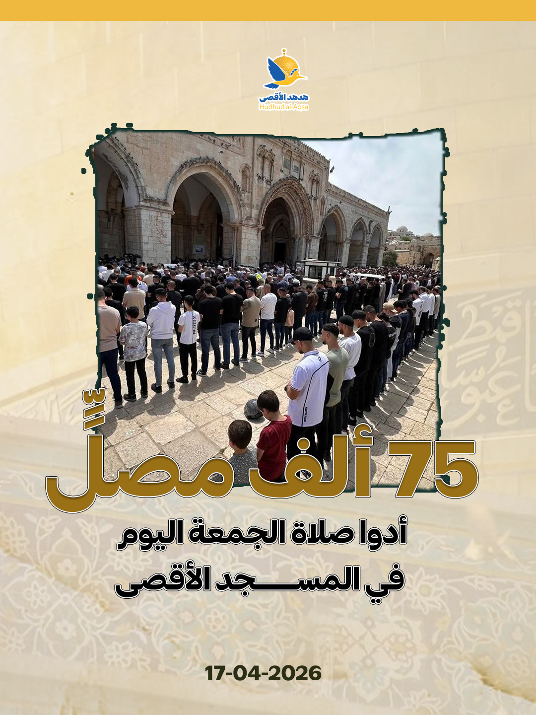 75 ألف مصلٍ أدوا صلاة الجمعة بالمسرى.