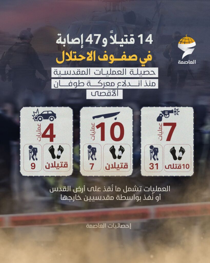 مع عملية إطلاق النار على حاجز النفق أمس، ارتفعت حصيلة العمليات التي نُفذت على أرض القدس أو نفذها مقدسيون خارجها منذ طوفان الأقصى .. تفاصيل أكثر