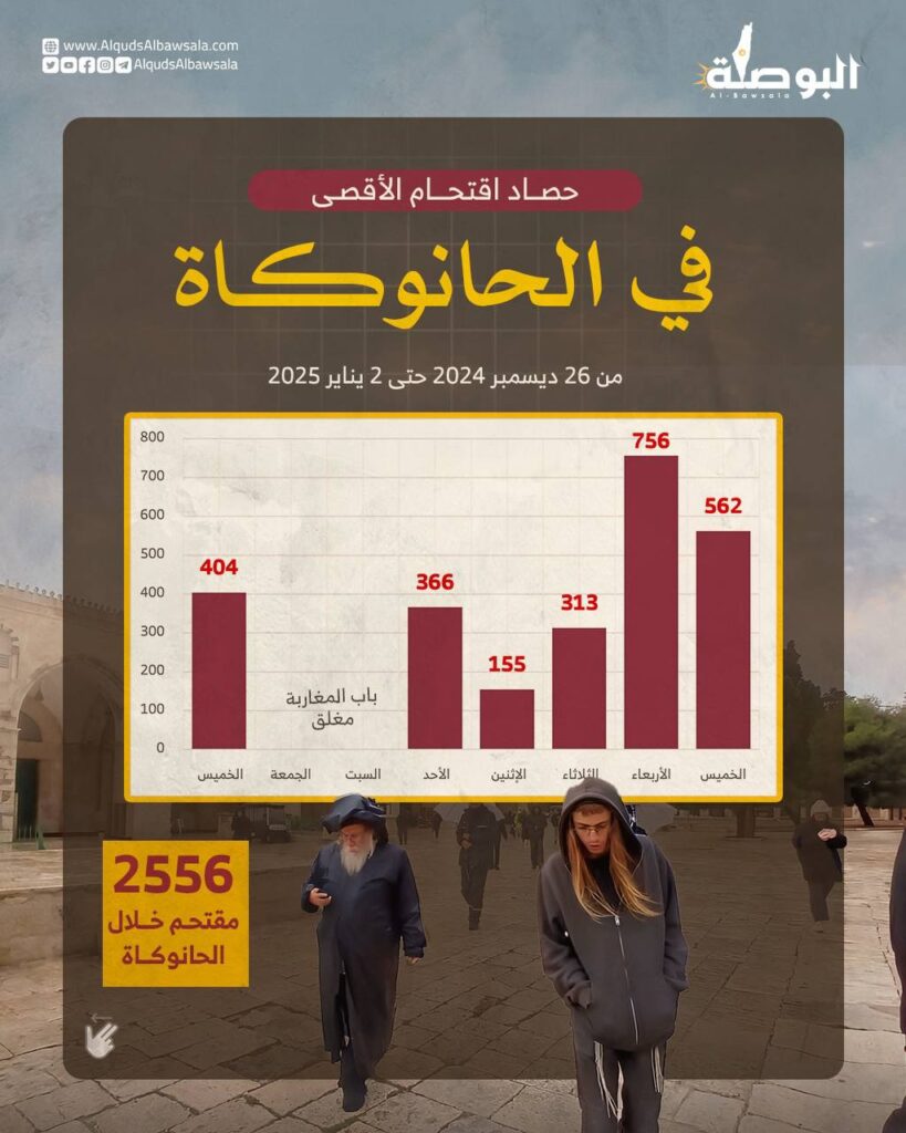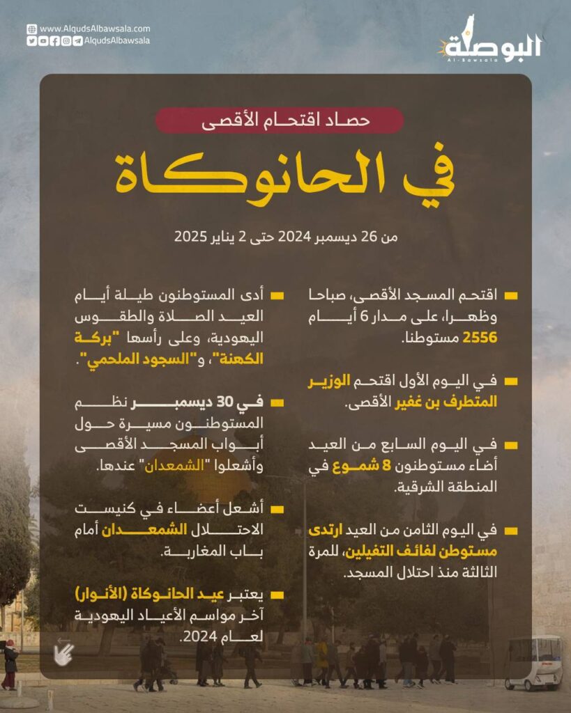 “القدس البوصلة” تُجمل لكم حصاد اقتحام الأقصى في الحانوكاة 2024/2025.