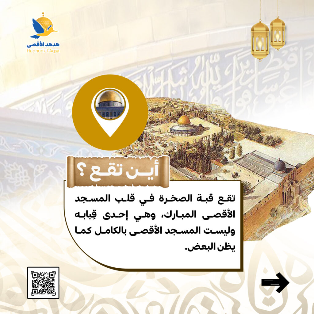 📍 تقع قبة الصخرة في قلب المسجد الأقصى المبارك، وهي إحدى قِبابه وليست المسجد الأقصى بالكامل كما يظن البعض.