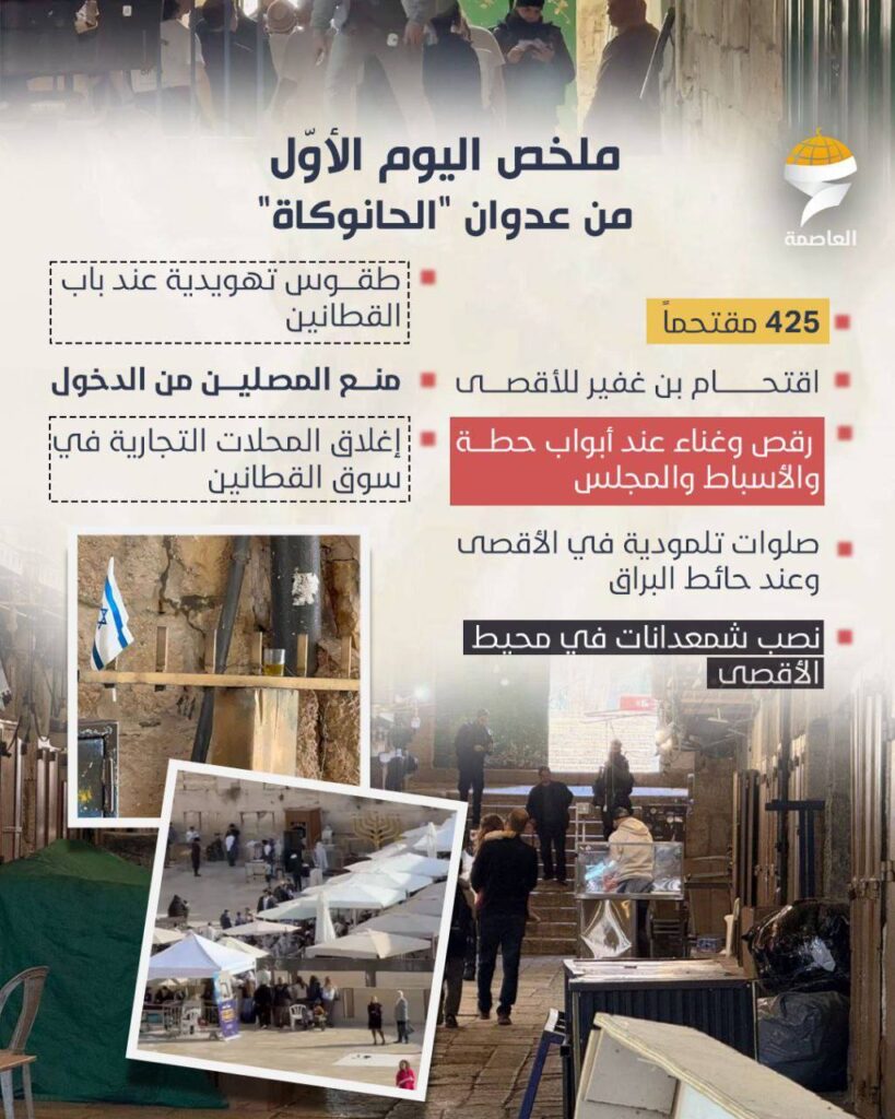 مقالة: كيف مر اليوم الأول من الاقتحامات في عيد ” الحانوكاه” العبري على المسجد الأقصى ؟