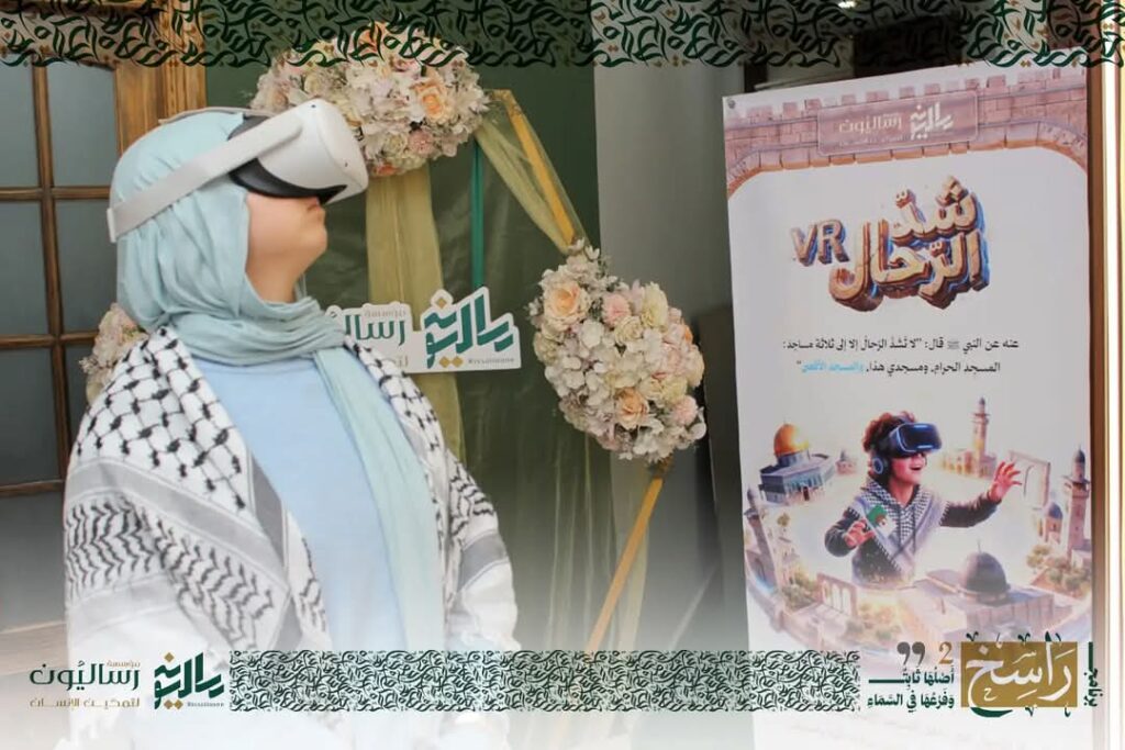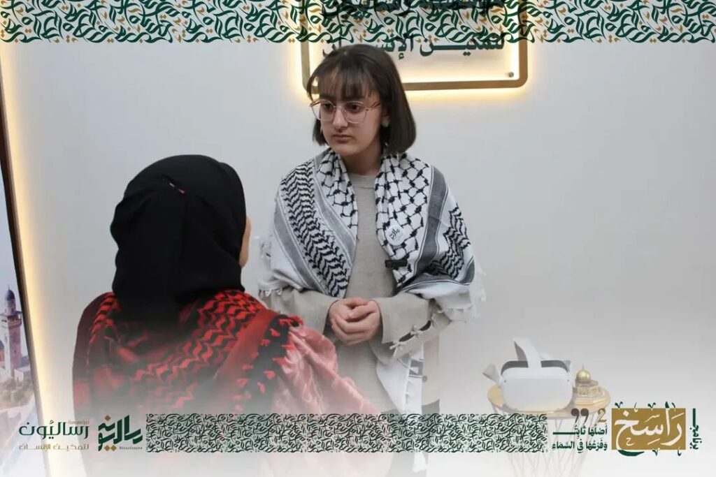 🕶الجولة الافتراضية: وهي تجربة فريدة من نوعها، حيث انتقلت الفتيات عبر تقنيات العرض الحديثة في جولة بين مختلف معالم المسجد الأقصى، من “قبة الصخرة” إلى “المصلى القبلي” و”المصلى المرواني”، للتعرف على تفاصيل عمارته وتاريخه العريق.