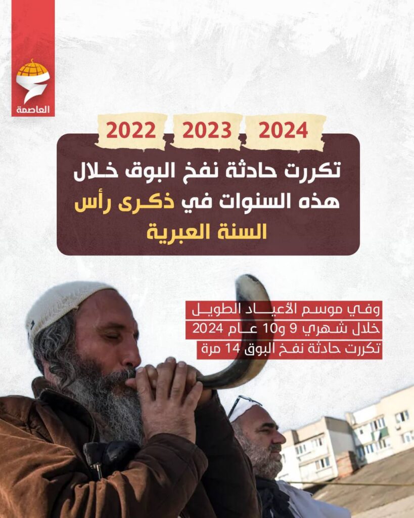 مع نفخ أحد الحاخامات في البوق أمس ارتفع عدد المرات التي نفذ فيها المقتحمون هذا الطقس داخل الأقصى إلى 20 مرة منذ عام 2021، حيث تكرر في ذكرى رأس السنة العبرية خلال الأعوام 2021 و2022 و2023 ومواسم العدوان الكبرى في عام 2024.
