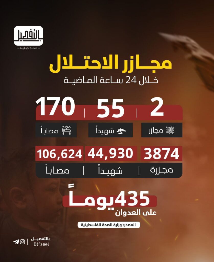 مقالة: 🔸 التقرير الإحصائي اليومي لعدد الشهداء والجرحى بحرب الإبادة المتواصلة على غزة لليوم 435.