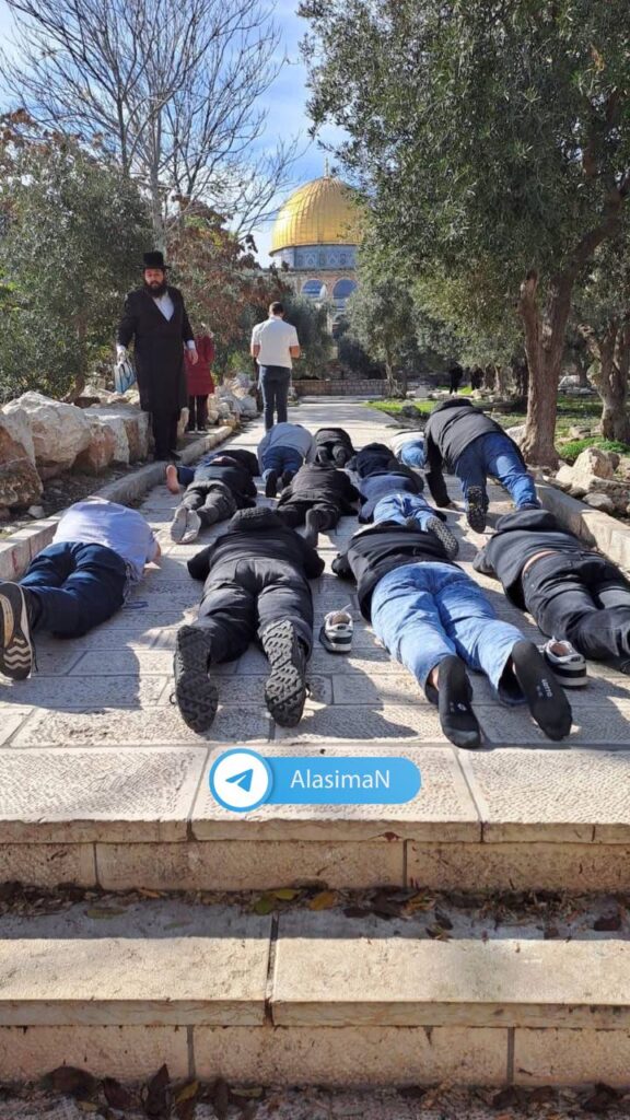مستوطنون يؤدون سجودًا ملحميًا خلال اقتحامهم المسجد الأقصى المبارك، اليوم