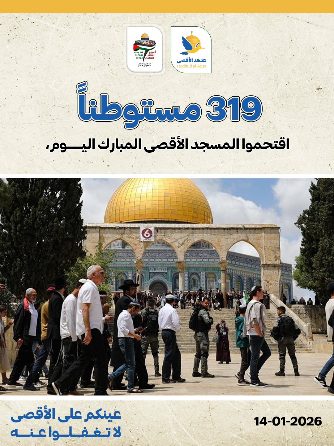 مقالة: 319 مستوطنًا اقتحموا المسجد الأقصى المبارك اليوم، خلال فترة الاقتحامات الصباحية وما بعد الظهر