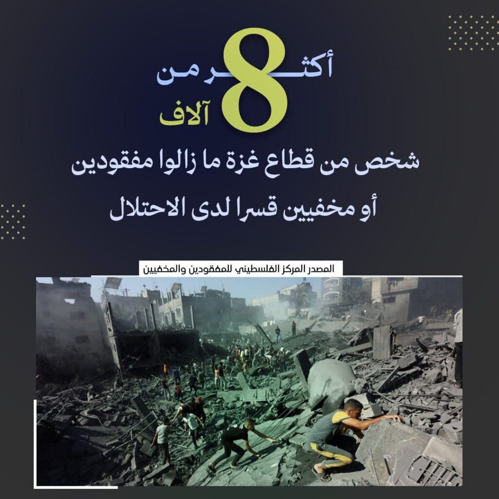 لا تزال قضيةُ أكثر من 8000 مفقودٍ ومخفًى قسراً في قطاع غزة تمثل جرحاً غائراً في ضمير الإنسانية، وسقوطاً مدوياً لمنظومة العدالة الدولية.