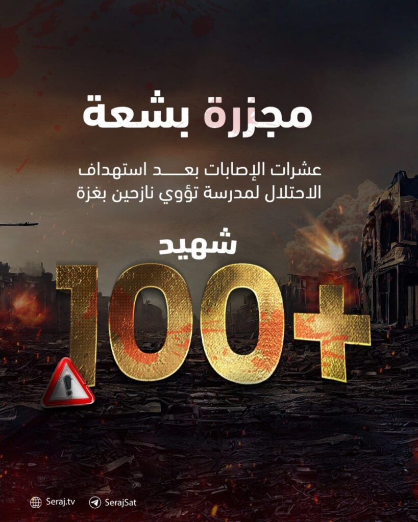 📌 في اليوم الـ336 من حرب الإبادة المتواصلة على قطاع غزة.. الاحتلال يركز قصفه على جنوبي قطاع غزة ووسطه وعدة مناطق من مدينة غزة: 🔸 شمال القطاع ومدينة غزة: 🔹 شهداء وعدد من الجرحى جراء استهداف فصل دراسي داخل مدرسة حليمة السعدية في جباليا النزلة شمالي قطاع غزة. 🔹 شهداء وجرحى جراء قصف الاحتلال منزلاً يعود لعائلة “حماد” في منطقة العلمي شمالي القطاع. 🔹 6 شهداء ومصابين بقصف طائرات الاحتلال منزلًا لعائلة راضي محيط مسجد بدر جنوب شرق مدينة غزة. 🔹 شهيدان وجرحى في قصف صهيوني على منزل قرب المستشفى الأردني غربي مدينة غزة. 🔹انتشال 3 شهداء من منزل عائلة “الحداد” الذي قصفه الاحتلال الصهيوني في منطقة تل الهوا جنوبي مدينة غزة و ما زال اثنين مفقودين تحت الأنقاض. 4 شهداء وجرحى جراء استهداف الاحتلال منزل لعائلة “ياسين” في شارع النديم بحي الزيتون. 🔹 شهيد بقصف صهيوني استهدفه في حي تل الهوا جنوب غربي مدينة غزة. 🔸 وسط القطاع: 🔹 5 شهداء جراء استهداف الاحتلال منزلا لعائلة شحادة غربي مخيم النصيرات. 🔹 شهيدان وإصابات بقصف صهيوني على شمالي مخيم النصيرات. 🔹 4 شهداء -طفلان وسيدتان- بقصف صهيوني لخيمة نازحين في أرض أبو مهادي غربي النصيرات. 🔹 6 شهداء على الأقل بقصف طيران الاحتلال منزلًا بمحيط مسجد الرحمة بمنطقة “أرض أبو سليم الغربية” غرب النصيرات. 🔹 7 شهداء وجرحى جراء قصف مدفعي إسرائيلي على منزل غربي مخيم النصيرات. 🔸 جنوب القطاع: 🔹 5 شهداء وعدد من الجرحى جراء استهداف منزلا لعائلة قنديل في محيط عمارة جاسر وسط مدينة خانيونس. 🔹 وصول شهيدتان وعدد من الإصابات جراء استهداف منزل لعائلة جرغون جنوب شرق خانيونسالشهداء هم :نور بربخهديل بربخ 🔹 انتشال جثماني رجل وامرأة جراء قصف استهدفهما شمالي مدينة رفح جنوبي قطاع غزة. #بالتفصيل