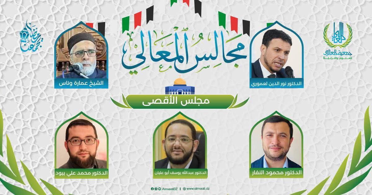 🔹يستضيف رئيس جمعية المعالي الأستاذ نورالدين لعموري مجموعة من الدعاة والباحثين الذين كان لهم اثرٌ طيب في نصرة أمانة المسجد الأقصى :