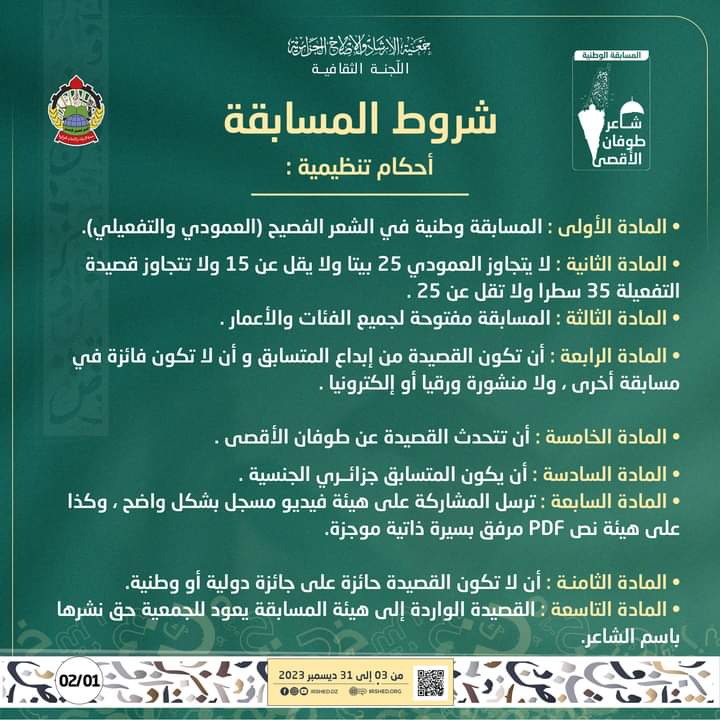 من تنظيم جمعية الإرشاد والإصلاح الجزائرية موجهة لكل الفئات العمرية المهتمة بالشعر