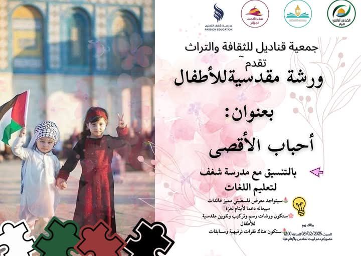 جمعية قناديل للثقافة والتراث تقدم ورشة مقدسية للأطفال بعنوان أحباب الأقصى بالتنسيق مع