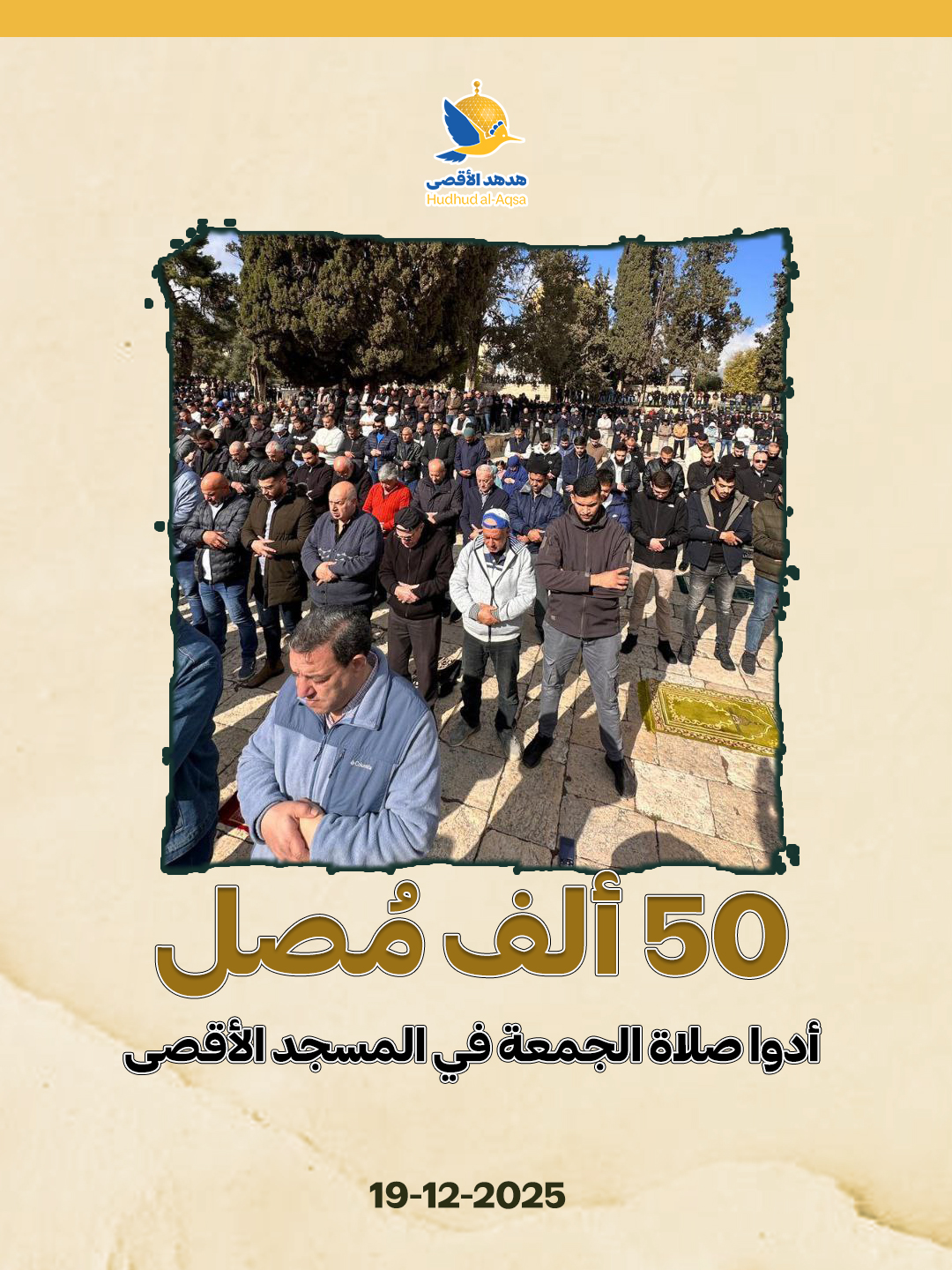 50 ألف مصلٍّ أدّوا صلاة الجمعة في المسجد الأقصى المبارك.