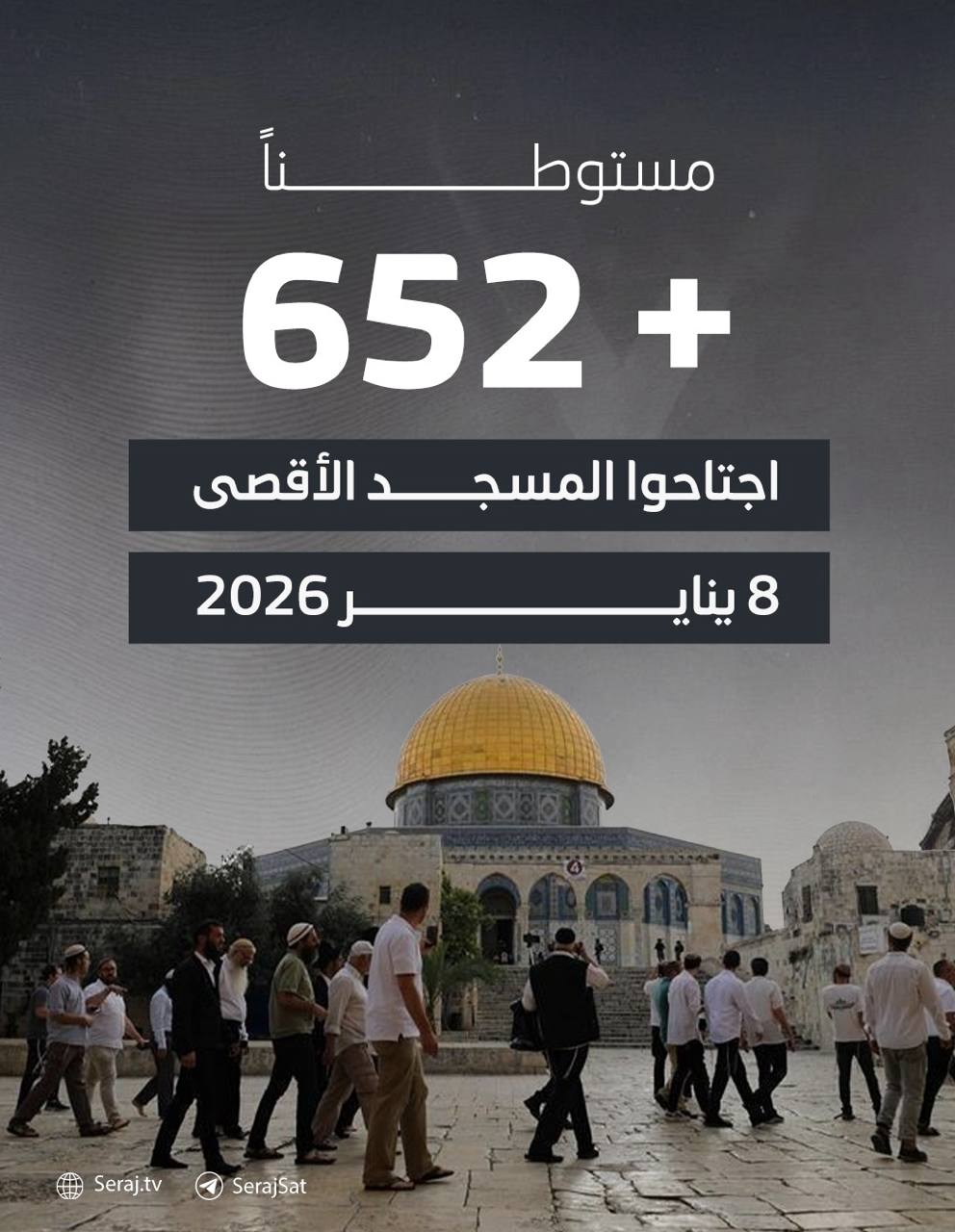 أكثر من 652 مستوطناً اقتحموا باحات المسجد الأقصى المبارك خلال فترة الاقتحامات الصباحية والمسائية اليوم،
