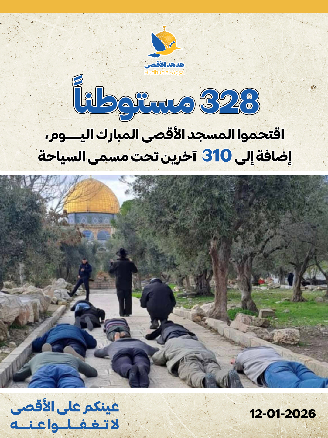 328 مستوطناً اقتحموا باحات المسجد الأقصى المبارك اليوم تحت حراسة شرطة الاحتلال، بالإضافة إلى 310